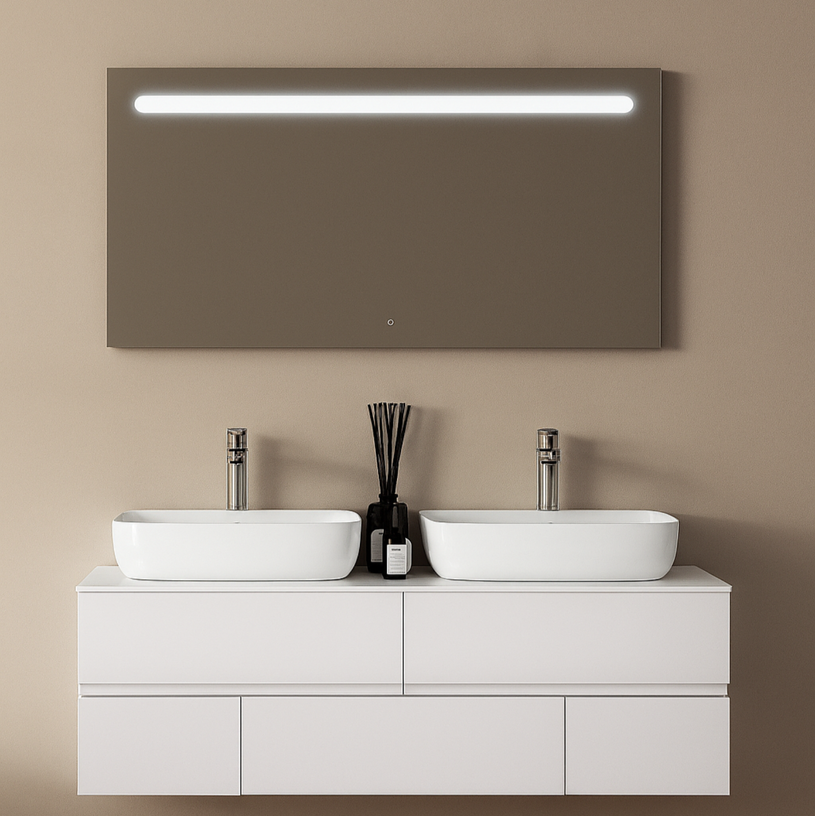En Artesanos del Baño encontrarás este espejo LED rectangular con banda arenada superior en varios tamaños, con envío rápido y la mejor calidad garantizada.