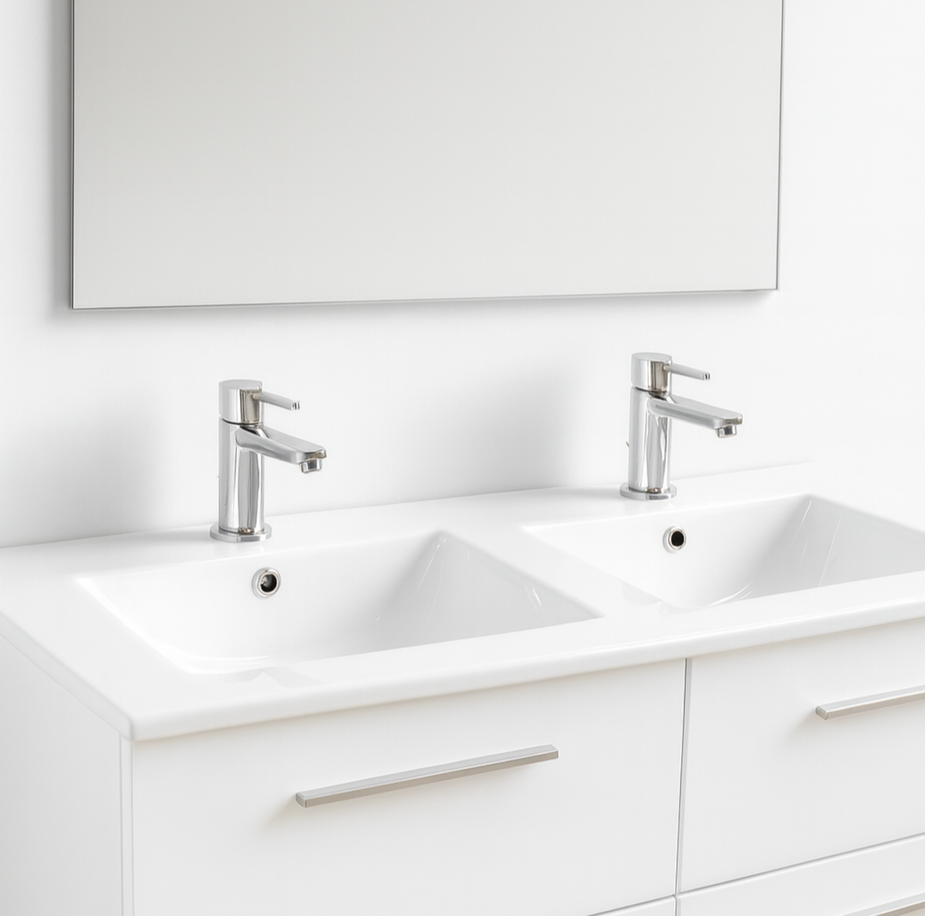 El lavabo encastrado dos seno media luna es la solución ideal para baños amplios y compartidos. Fabricado en cerámica blanca de alta calidad, ofrece un diseño moderno, funcional y elegante que facilita el uso simultáneo gracias a sus dos senos integrados.