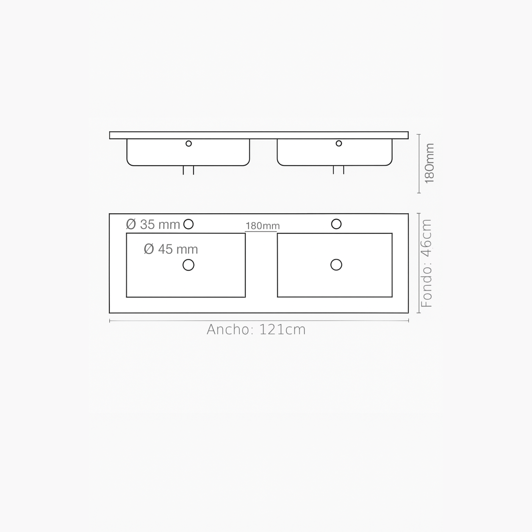 • Diseño doble seno rectangular que optimiza el espacio.