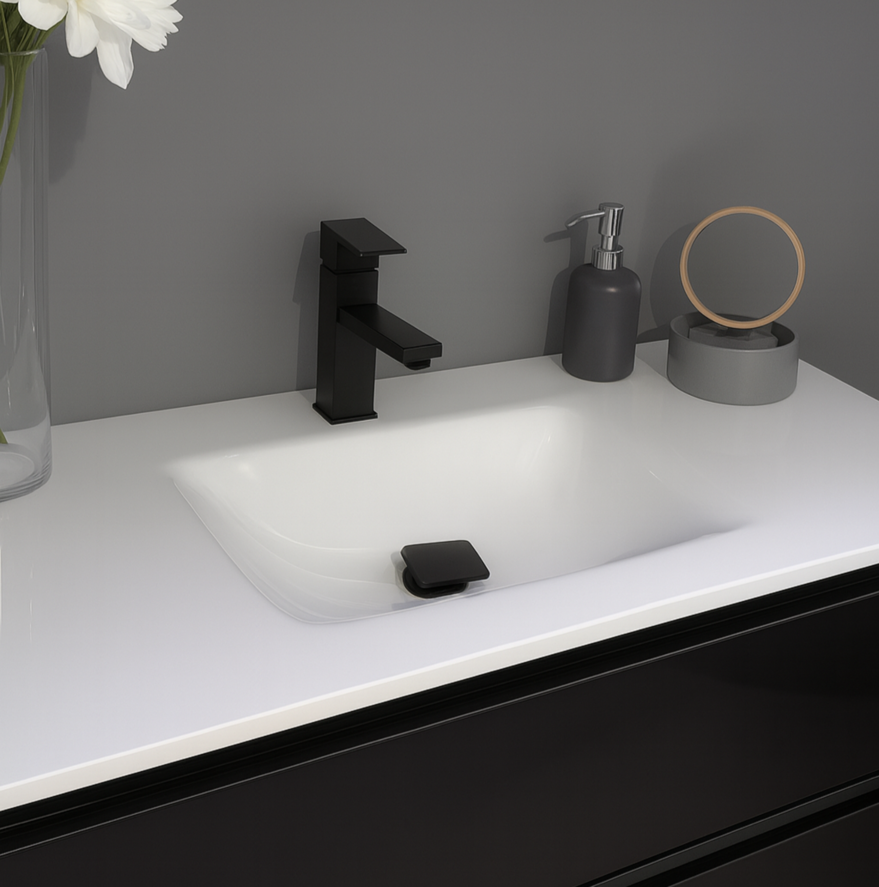 Equipa tu baño con la encimera con lavabo Cristal White, disponible en varias medidas y fabricada en materiales de alta calidad.