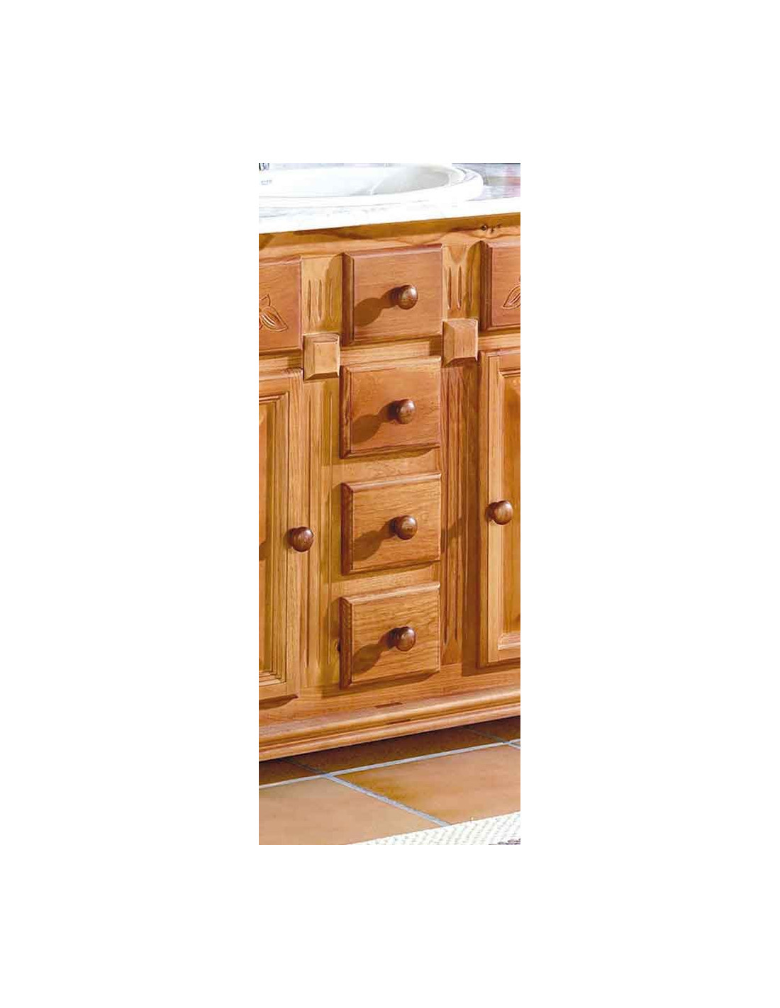 – Mobiliario de baño realizado en madera maciza de pino de primera calidad, y seleccionada en su fabricación.