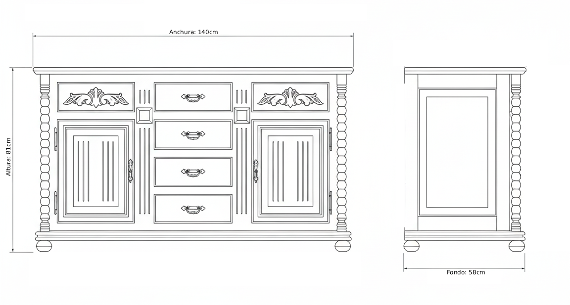 • Medidas: 140 cm de ancho x 58 cm de fondo x 81 cm de alto.